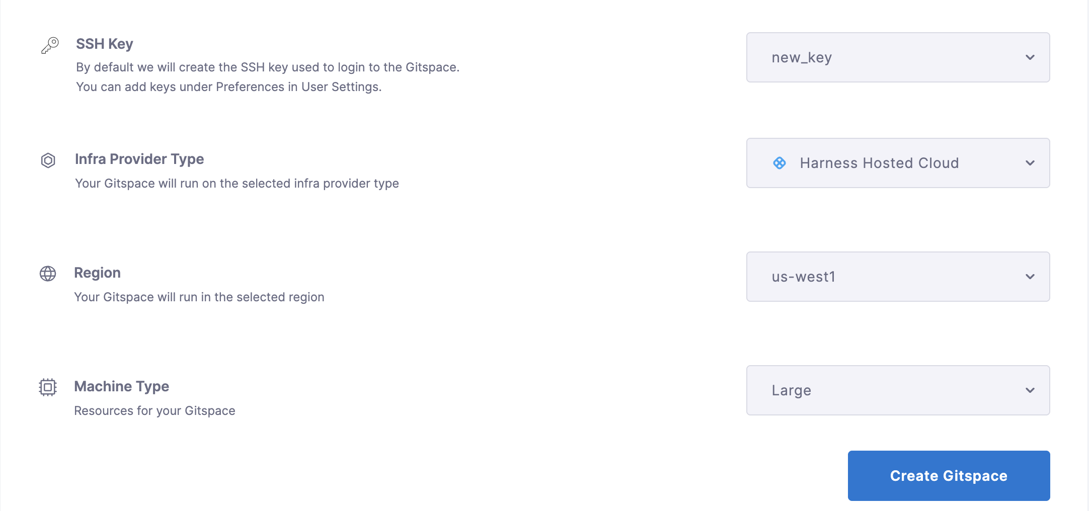 1. Navigate to the Harness UI and create a new Gitspace for your project repository.