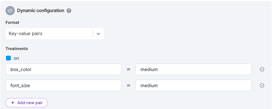 If you select Key-value pairs as your format, attach one or more configurations to each of your treatments as follows: