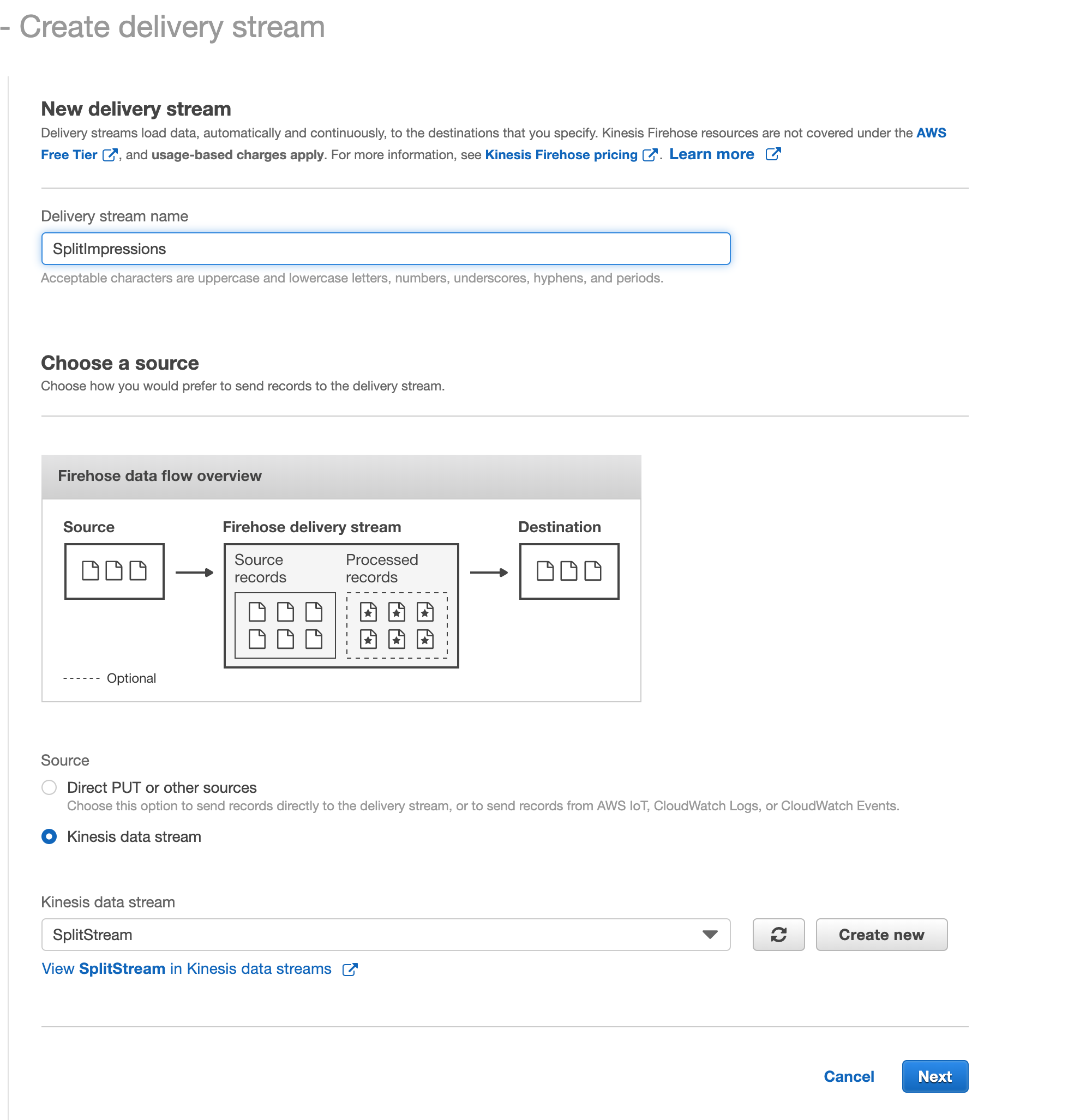 This page describes how to setup an AWS Kinesis Stream service to store Split Impressions data in AWS S3 in JSON format.