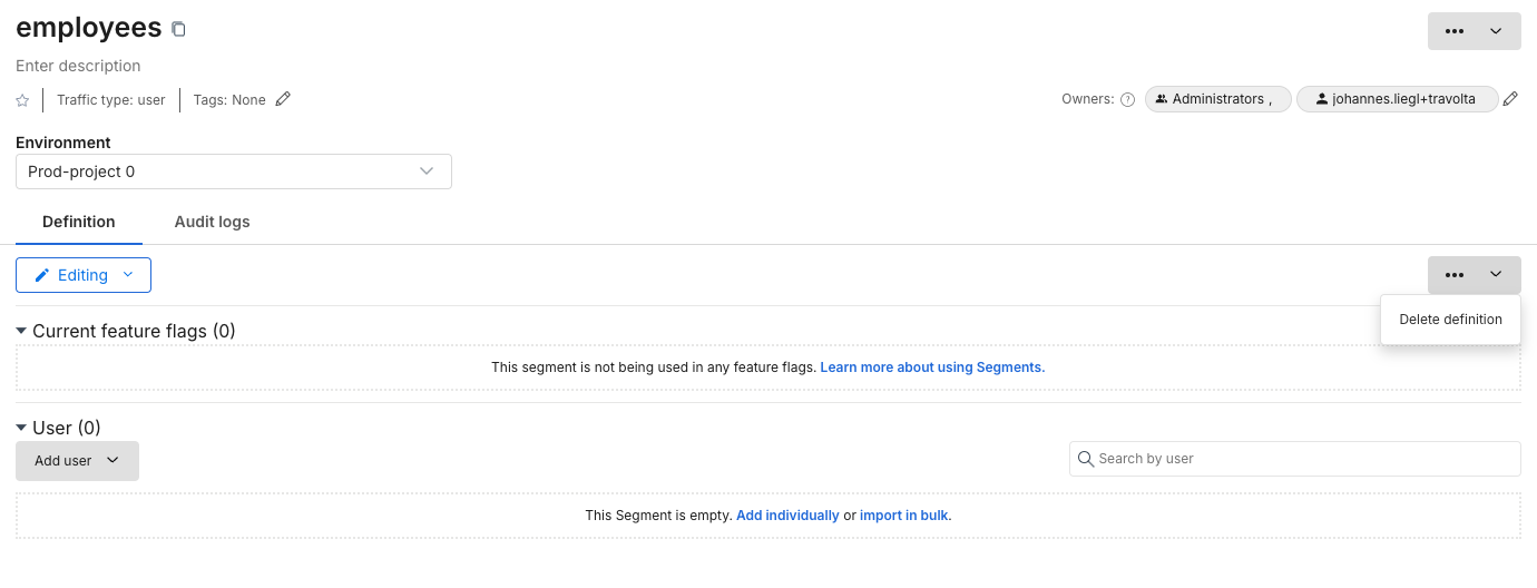 Then, delete the segment definition and repeat these steps for all environments.