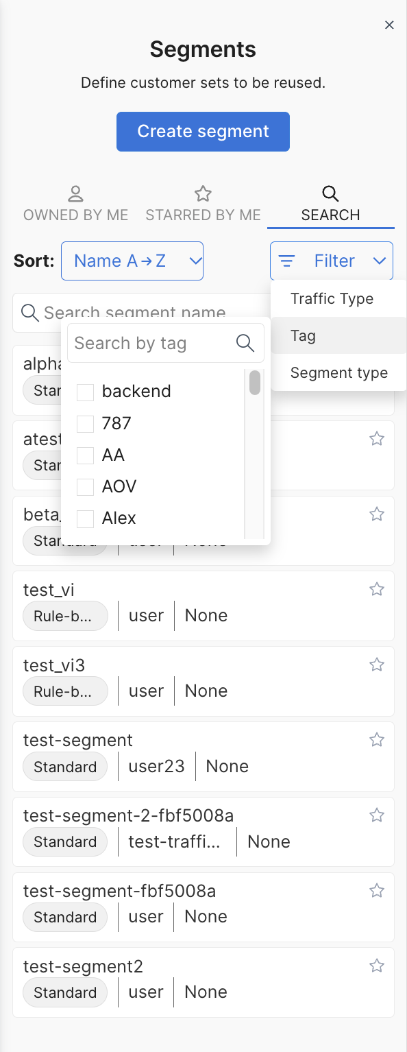 Use tags to narrow feature flags, segments, metrics, or experiments to only the objects that match one or more tags.