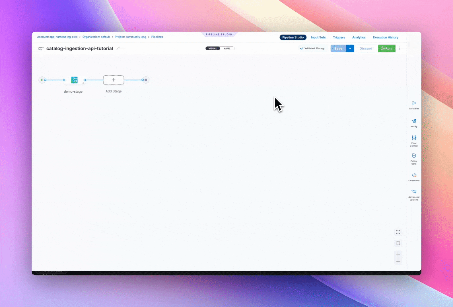 • We recommend the use of following Harness Pipeline to add a new metadata codeCoverageScore to the warehouse component. While using the following pipeline YAML make sure to add the x-api-key as pipeline variable of type secret and name apikey.