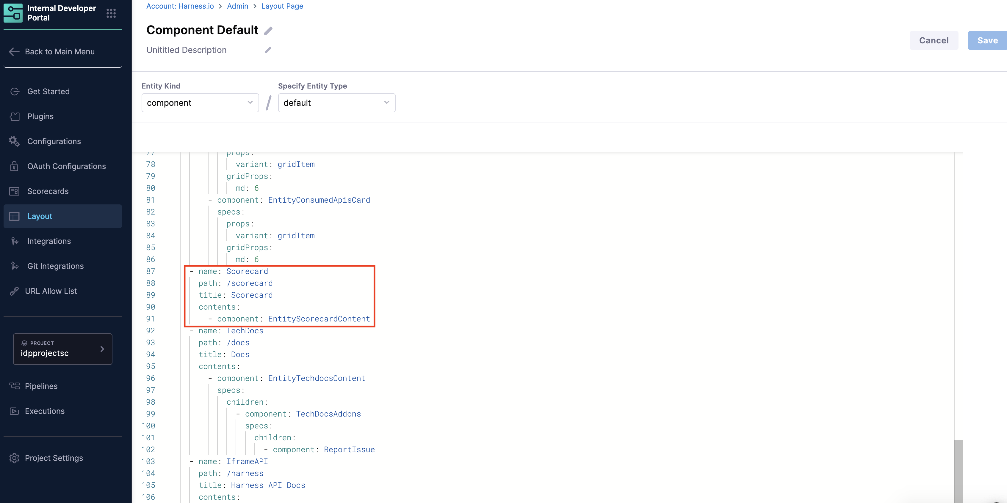- Go to the Configure -> Layout in Harness IDP.
