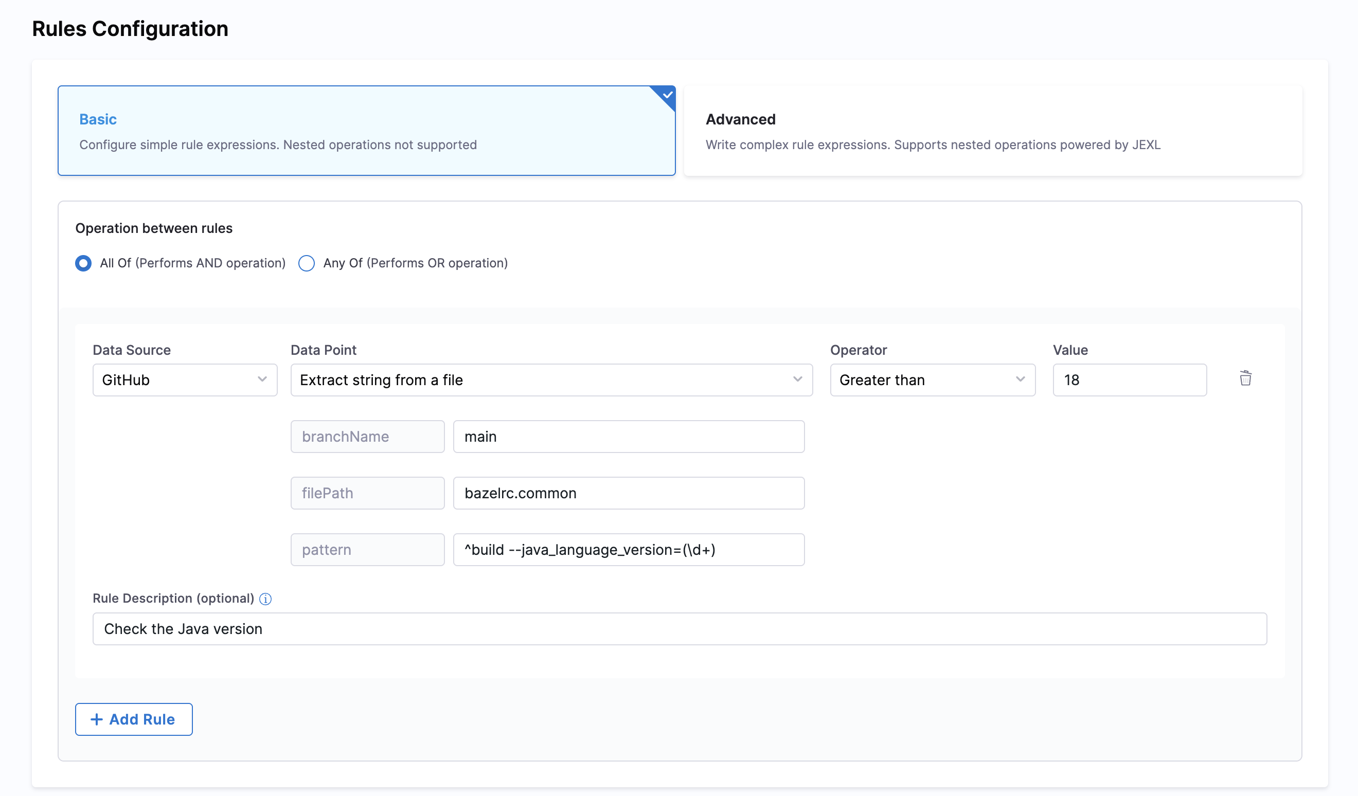 • File Name: Specify the filename with its extension or the relative path from the root folder (e.g., .bazelrc, package.json, go.mod, or manifest/Dockerfile)