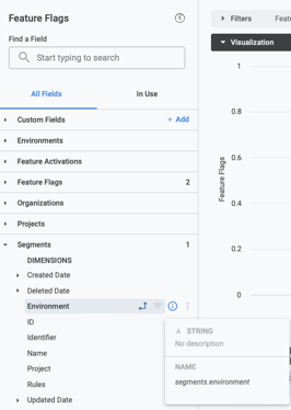 • If you have trouble with a particular data point, pass both the table name and the field name in the prompt. For example, if you want to view your feature flags by segment environment, you could enter the following prompt: What are my total feature flags? Pivot by segments environment.