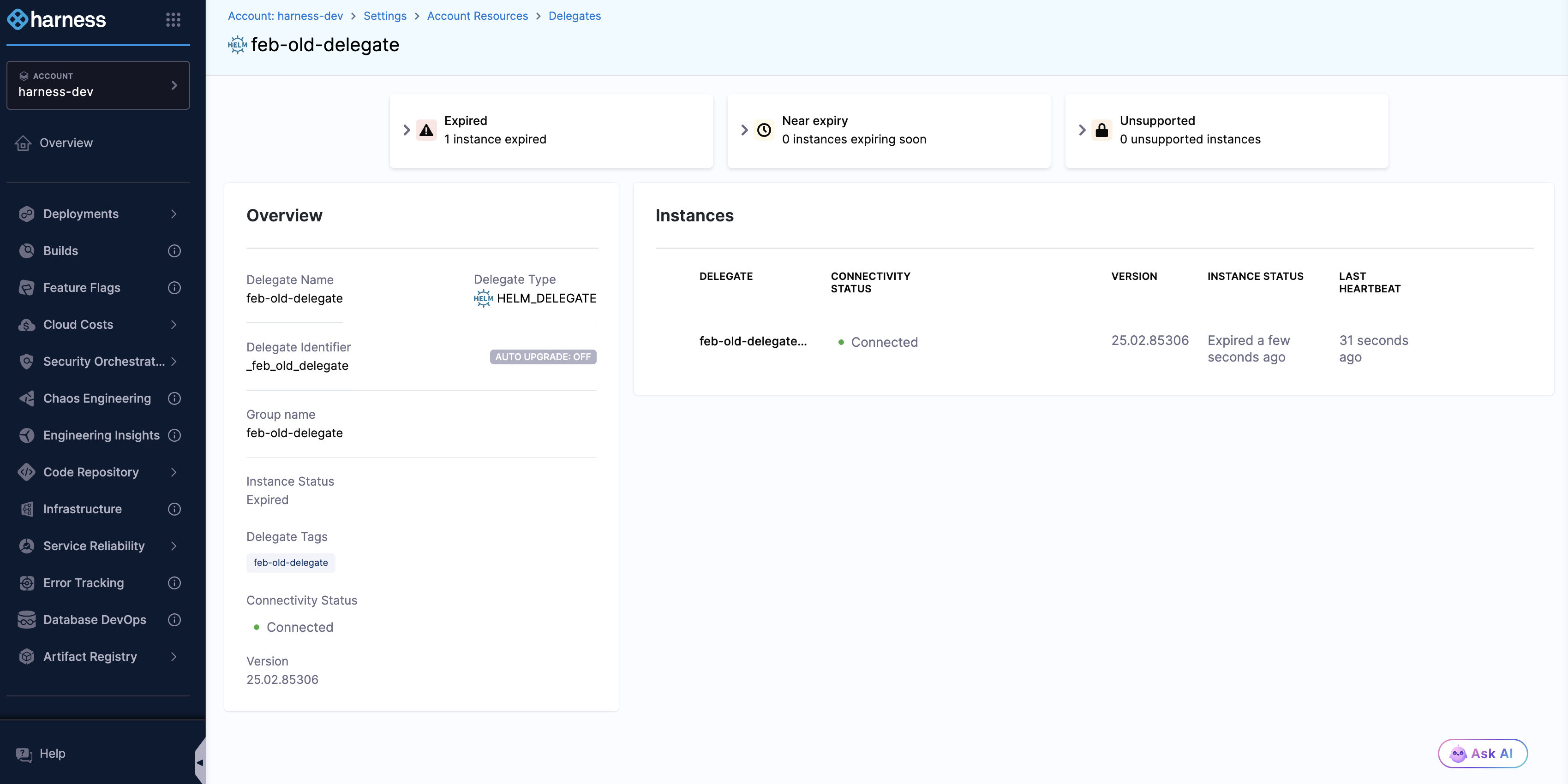- Instance Status - Displays when the delegate expires. It is used to determine when a delegate needs to be updated or replaced.